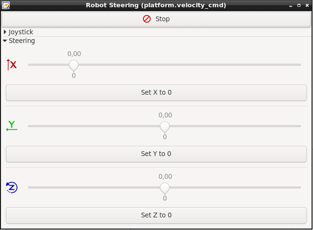 A modal dialog will appear. You can choose between a joystick representation and velocity sliders: